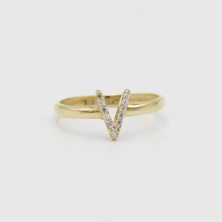 14K Initial Name ( V ) Ring Cz Stones Yellow Gold
