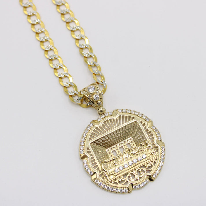 14K Last Supper Pendant Cz Stones With Solid Cuban Chain Two Tones Yellow Gold