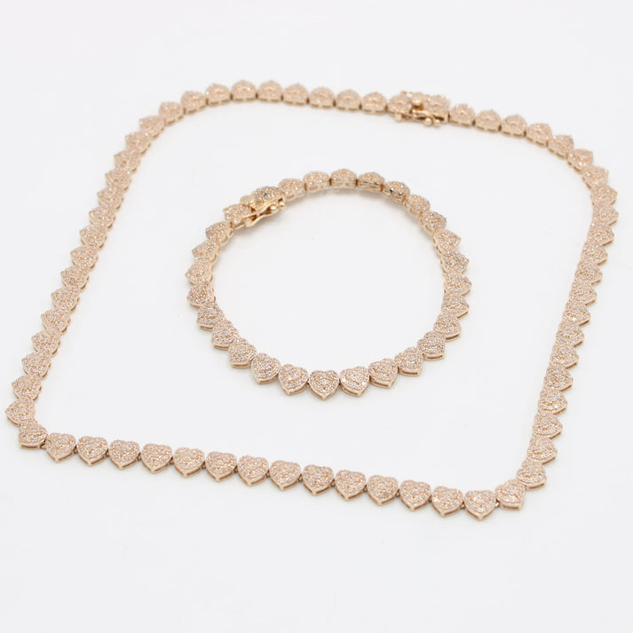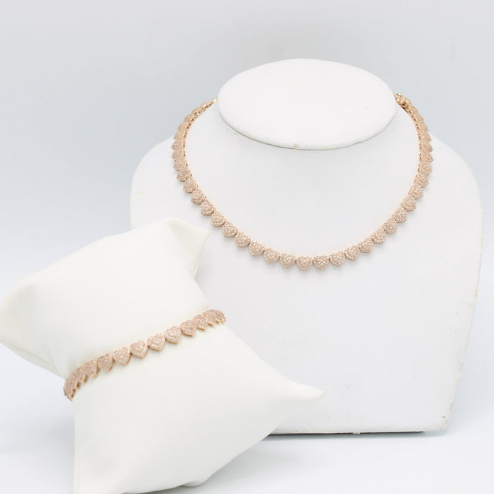 14K Set Heart Choker With Bracelet Cz Stones Rose Gold